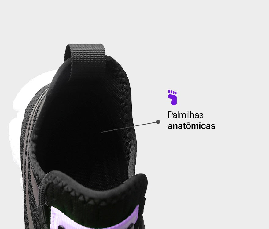 Desenvolvido para maior aderência ao solo e firmeza em todas as superfícies, proporcionando mais segurança ao caminhar ou correr.