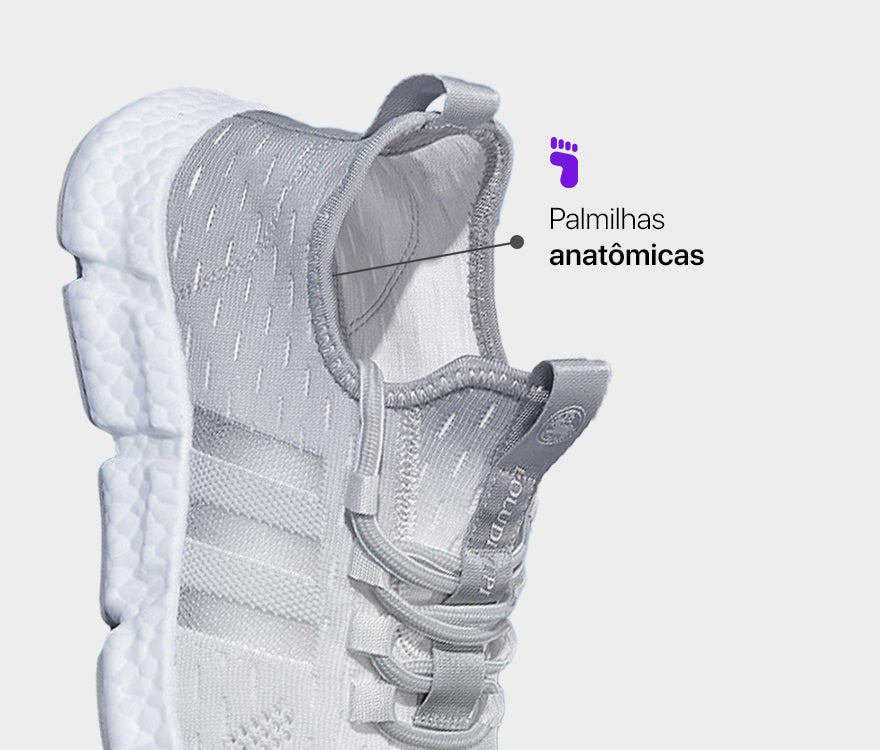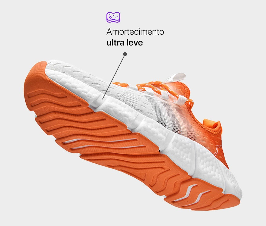 Desenvolvido para maior aderência ao solo e firmeza em todas as superfícies, proporcionando mais segurança ao caminhar ou correr.