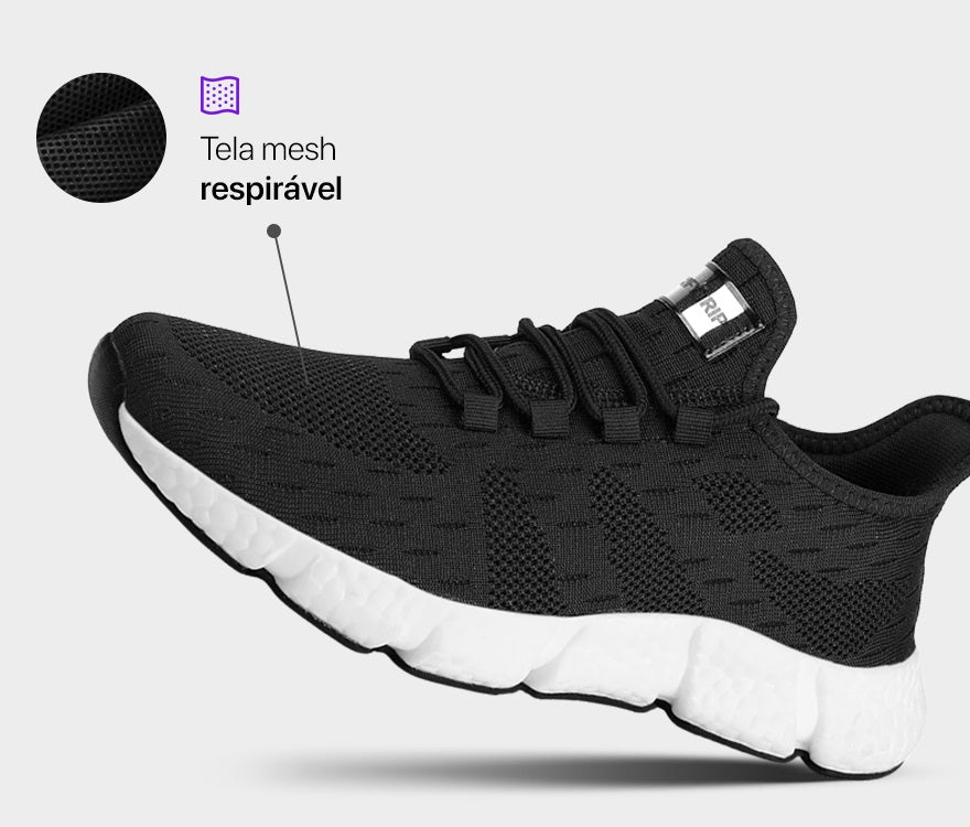 Desenvolvido para maior aderência ao solo e firmeza em todas as superfícies, proporcionando mais segurança ao caminhar ou correr.